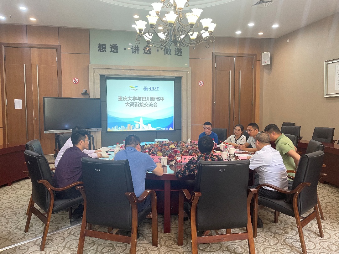 一行五人与巴川中学领导和老师召开了座谈会。巴川中学校长郭洪,校长助理单迎华,人事处赵敏老师,校友何小芬、谭栩参加了会议。