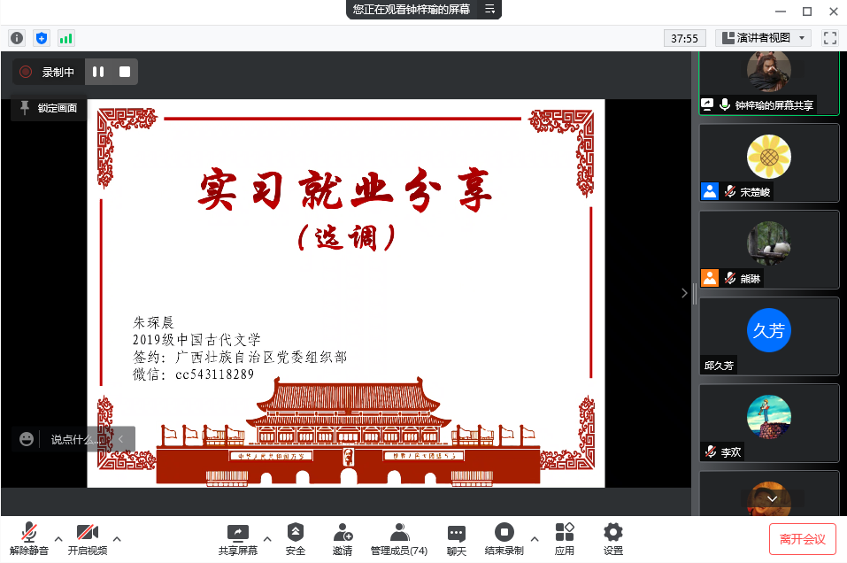 研究生二支部于2022年3月31日以腾讯会议的方式举办“着眼未来,学以职用”线上就业经验分享会。会议由免费av
