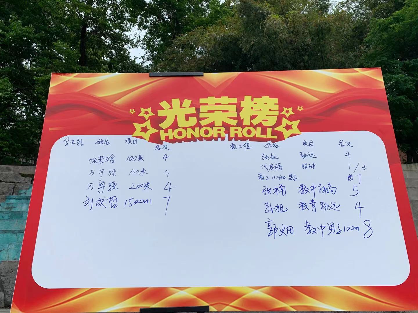 在全院师生的共同努力下,学院在运动会中取得了良好的成绩。其中,2019级徐若晗荣获女子100米赛第4名,2020级万宇骁分别荣获男子100米、200米赛第4名,2017级刘成哲荣获男子1500米赛第7名。教工组的老师们更是充分展现出了他们的全能,孙旭荣获教工青年组男子立定跳远第4名,代启福荣获教工青年组男子铅球第1名、教工中年组男子铅球第3名,张楠荣获教工中年组男子跳高第5名,郭畑荣获教工中年组男子100米第8名,郭畑、钟准、黄铭、代启福荣获教工青年组男子4×100米第7名。最终,免费av
