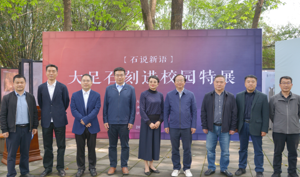 签约仪式前,双方还在思群广场共同出席了《“石说新语”——大足石刻进校园特展》开幕式。该展览作为双方共同主办的校园专场文化活动,秉持“让文物活起来”的理念,促进我校师生近距离了解世界文化遗产,助力提升校园“文景一体”建设、厚植重大文脉、赓续传统文化、讲好中国故事。