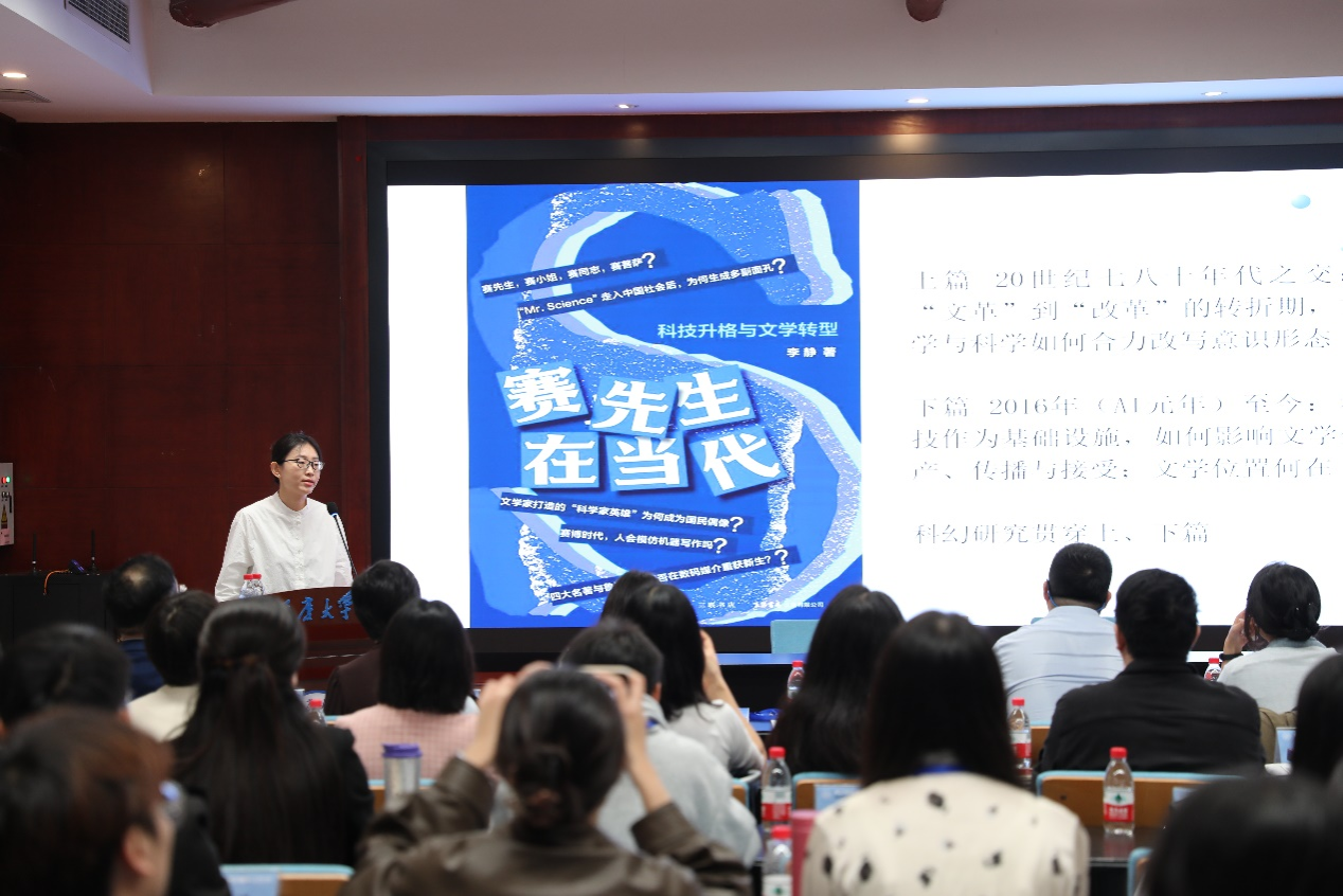 随后,中国艺术研究院副研究员、《文艺理论与批评》副主编李静发表了主旨演讲《重审赛先生:当代中国科学文化研究的路径与价值》,并与李广益教授展开了深入对话,探讨了科学文化研究在中国的发展前景。她认为,对科幻文学和科学文化的研究不仅有助于重思社会主义经验的复杂性,进而理解技术在当下社会中的功能,更有助于在世界视野中把握中国科幻的方位,通过公共性、社会性与政治性三重维度,展开中国科学文化从历史到现实不断发展的光谱。