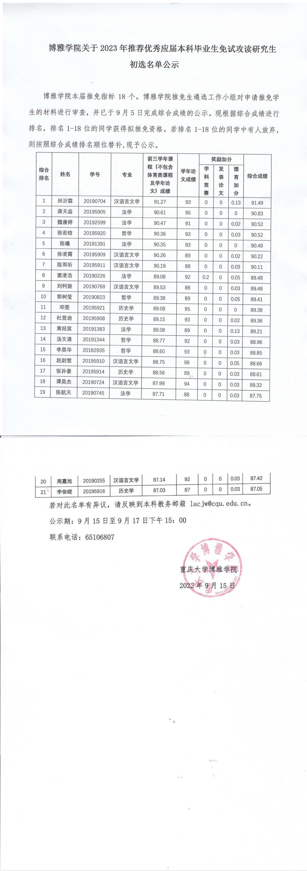 免费av 关于2022年推荐优秀应届本科毕业生免试攻读研究生初选名单公示
