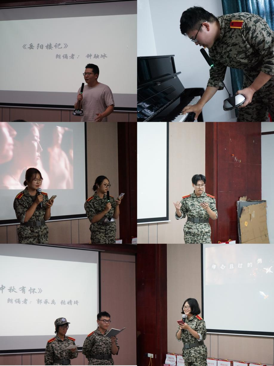 “击鼓传花”的游戏让同学们聆听到钟融冰老师的深情朗诵的《岳阳楼记》。八百里洞庭湖浩瀚飘渺,千余年岳阳楼壮观宏大,在老师的朗诵中,同学们随着范仲淹的隽永文辞一起领阅了美丽的洞庭风光,瞻仰了那雄奇的历史古迹;“This is the worthwhile fight”,董峰椿带来歌曲《State Of Grace》,伴随着鼓点,细品快意相遇之美;耿鑫莹、倪睿启演唱一首为女性而作的歌《她和她和她》,展现了女孩特有的自信与勇敢;“时间是让人猝不及防的东西,晴时有风阴时有雨”,庞宇琦、张婧琦演唱的《岁月神偷》告诉大家,偷走的是岁月,留下的是情怀;“我们向美好未来执着前进,明天出发也为时不晚”,曾燚演唱的歌曲串烧《得过且过的勇者》用既幽默诙谐又简单有力的旋律提醒同学们不忘本真的自我;陈海梁带来的歌曲《万有引力》灵动清新,提醒着同学们“收集每一个点点滴滴”;张婧琦、郭承禹朗诵原创诗歌《重大中秋有怀》,展示了博雅学子深厚的文学功底和满腔热血……从歌曲到舞蹈,从游戏到朗诵,从始至终,同学们的热情不减,掌声不断,情融今朝的美好,永驻在每个人的心房。