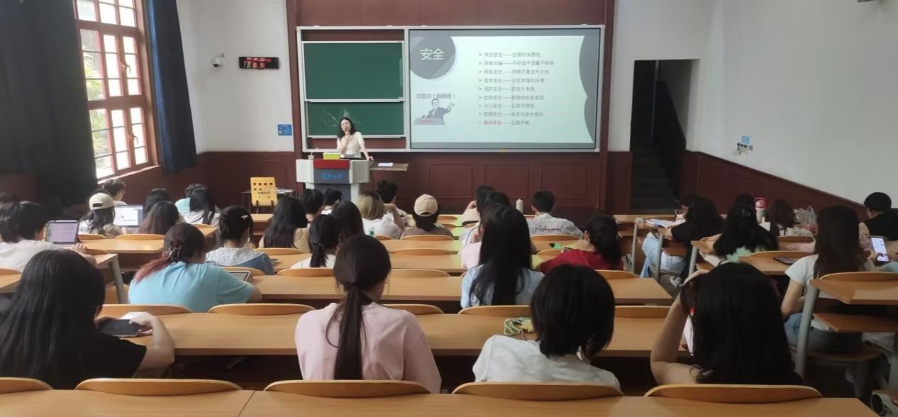 会议最后,高老师重点强调了暑期安全事项,提醒同学们增强防范意识,确保人身和财产安全:离校前检查宿舍水电,锁好门窗,贵重物品随身携带或妥善寄存。出行前告知家人行程,保持通讯畅通。高老师特别强调同学们要警惕兼职诈骗、刷单骗局,不轻信“高薪轻松”的广告,保护个人信息,不随意点击陌生链接等。