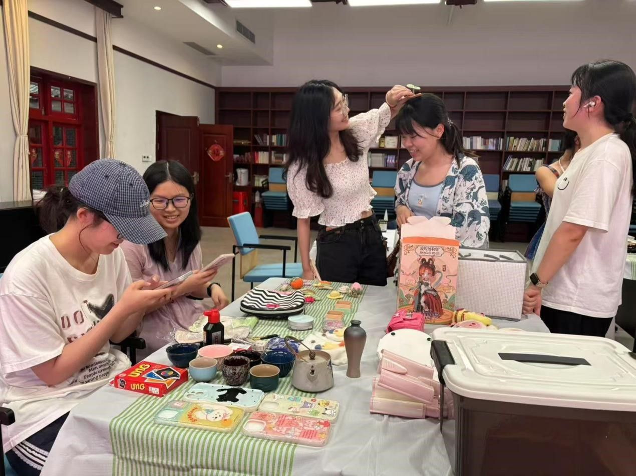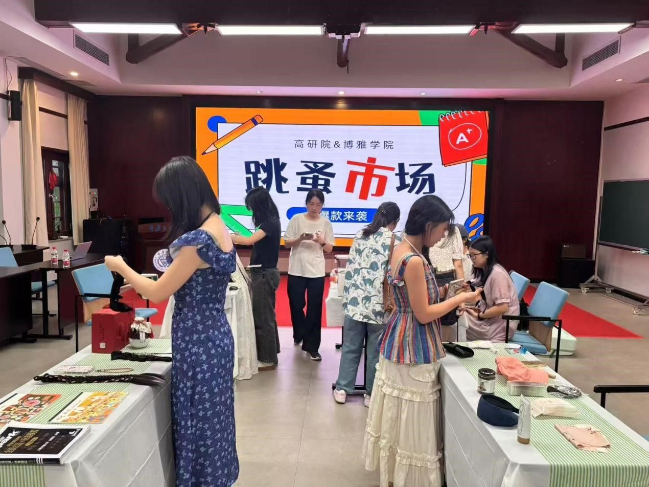 报告厅内,“青春不散场,旧物传新章”毕业生跳蚤市场温情启幕。四个特色摊位整齐排列,从泛黄的专业书籍、承载回忆的手工艺品,到闲置的文具、创意改造的校园文创,每一件物品都镌刻着毕业生在博雅的成长印记,静候新的主人续写故事。毕业生化身“摊主”,热情讲述物品背后的青春往事;学弟学妹们驻足挑选、交流心得,将这份独特的“博雅记忆”传递下去。