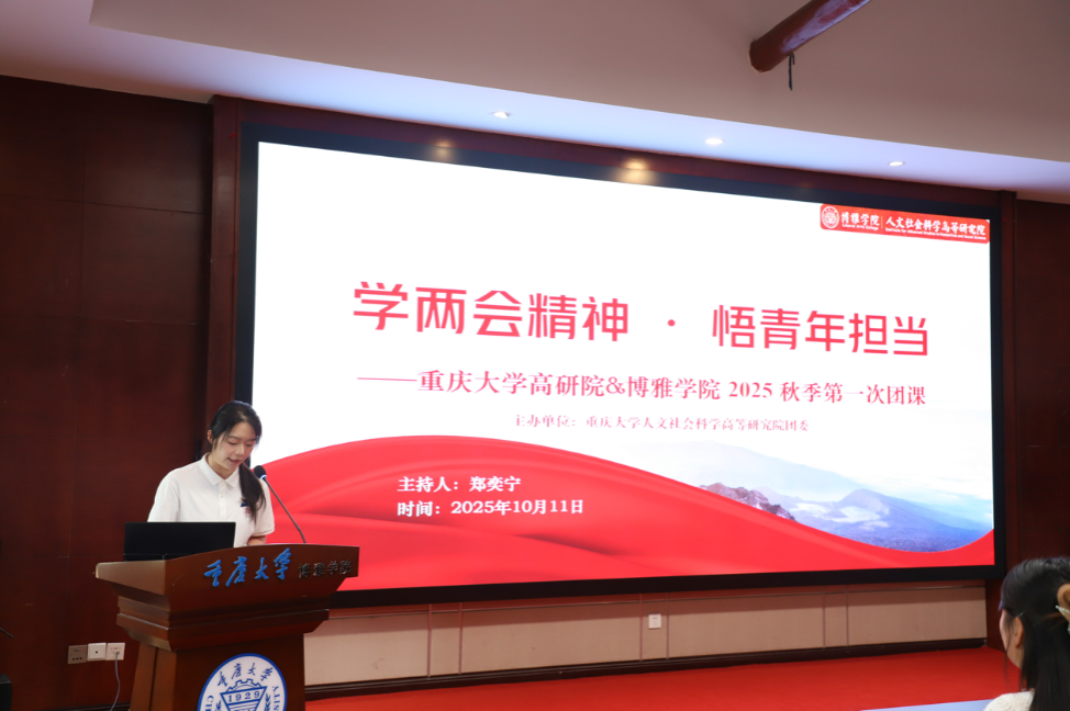 本次系列学习活动由10月11日下午的“学两会精神·悟青年担当”主题团课拉开帷幕。本次团课由高研院研团委委员郑奕宁主持,近百名团员青年积极参与。活动设置理论解读、小组讨论与互动研讨三大环节。在理论解读部分,主持人从“发展重点”、“青年关联”、“世界意义”三个维度,借助详实数据与政策解读视频,系统剖析了政府工作报告中的十大重点任务,引导同学们在两会的17个热门词汇中探寻个人发展机遇,特别是在“人工智能+”等前沿领域激发建功立业的志向。通过观看《中华文明国际形象网宣片》及分析雅万高铁等实例,同学们深刻认识到中国在全球经济中的“稳定器”作用及中国式现代化的世界意义。