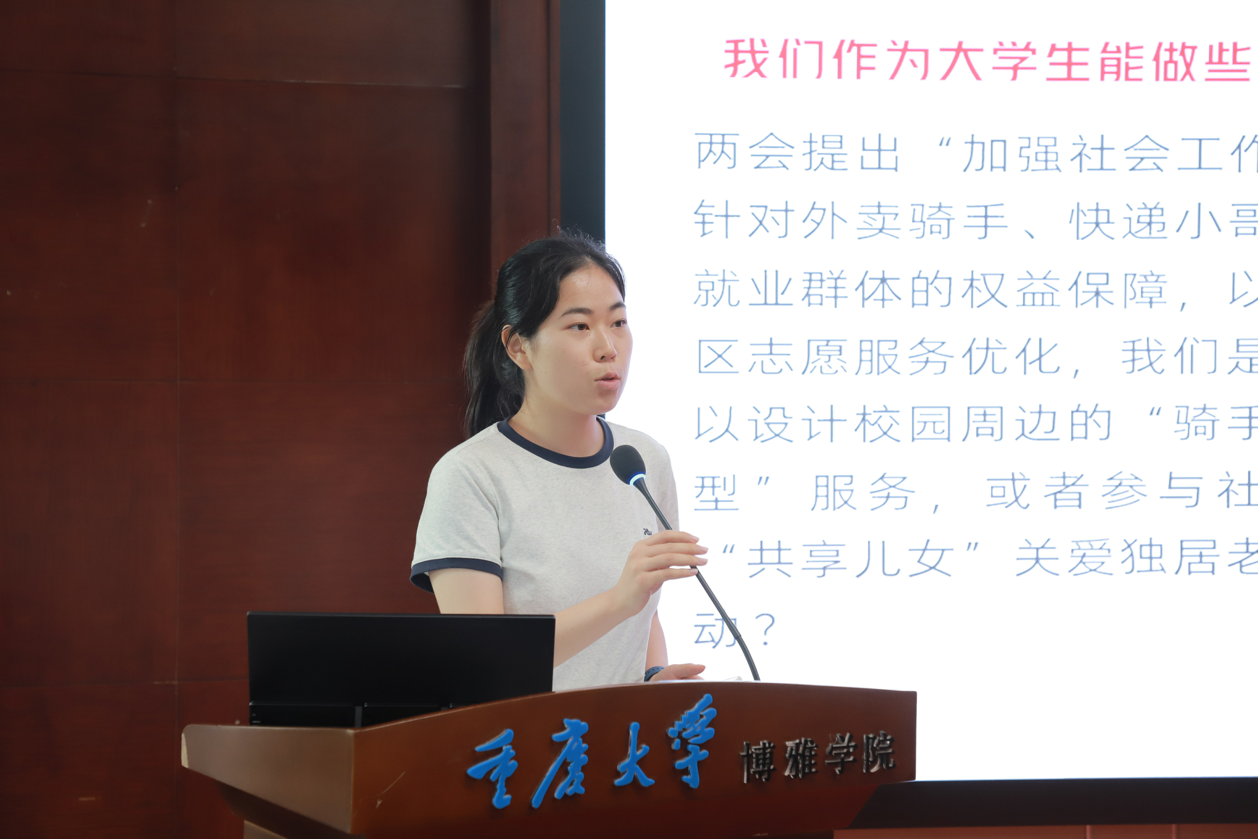随后的讨论环节气氛热烈,同学们围绕青年在人工智能与未来产业中的优势、服务新就业群体与社区、个人成长与国家需求结合等议题展开深入交流。同学们提出了诸如利用AI进行古籍研究与内容优化的见解和非遗保护、组织校园志愿活动、服务基层乃至投身中西部乡村振兴的构想与决心,充分展现了团员们将专业所学与国家战略紧密结合的智慧与担当。