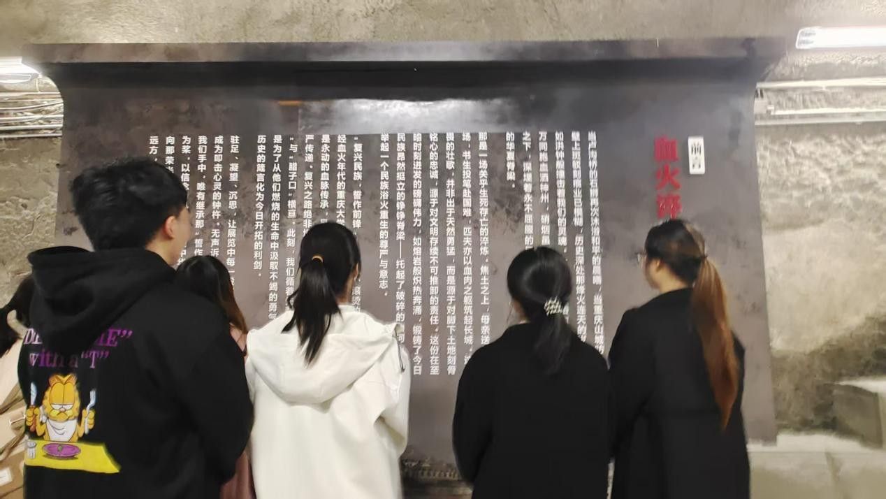 参观过程中,支部党员认真聆听了该防空洞作为中共沙磁区委成立地的革命历史,以及侯子勤、何其忱等重大学子投笔从戎、以身许国的英勇事迹。大家被“愈炸愈强”的重大精神和“复兴民族、誓作前锋”的铿锵誓言深深感动,对学校在民族存亡之际恪守育人使命、赓续文明火种的担当表达崇高敬意。