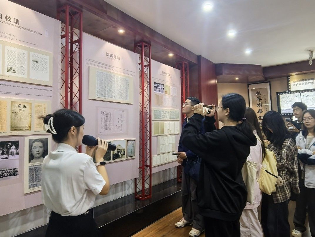 实践领悟是深化学习成效的重要途径。各团支部依托红色资源开展沉浸式实践活动,在追寻历史印记中深化团员们对伟大抗战精神与重大校训精神的理解。其中,25级研究生团支部走进校史馆和重庆三峡博物馆,在永不磨灭的民族记忆中增强广大团员青年的文化认同。25、24级本科生各团支部在校内防空洞遗址引领团员重温抗战时期重大师生坚守教学、救国图存的感人历史,直观体悟学校厚重的文化底蕴与精神传承。从书本走向实景,从理论落到行动,为广大团员青年思考青年担当、落实实践效能打下了坚实的基础。