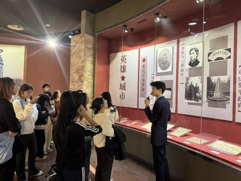 研究生走进重庆三峡博物馆,开展“对话历史溯血脉,传承精神向未来” 专题学习活动。活动伊始,分团委书记赵路遥以抗战胜利80周年为切入点阐释伟大抗战精神,通过发布三项实践任务为研学锚定方向。随后,同学们跟随讲解员深入各展厅研学:在《壮丽三峡》展厅触摸千年文脉,领会 “攻坚克难、为国担当” 的三峡精神;在《重庆之路展厅》梳理城市发展脉络,感悟党的领导与城市崛起的深层关联;在《抗战岁月》展厅透过无声文物,回望气壮山河的抗战史诗,研学氛围十分浓厚。自由参观后,小组分享环节亮点纷呈,展现了重大学子奋进的青春风采。此次活动让学子在探寻中触摸历史温度,在交流中明晰使命担当,激励广大青年学子将红色记忆转化为奋进动力,为传承革命精神、讲好中国故事筑牢根基。