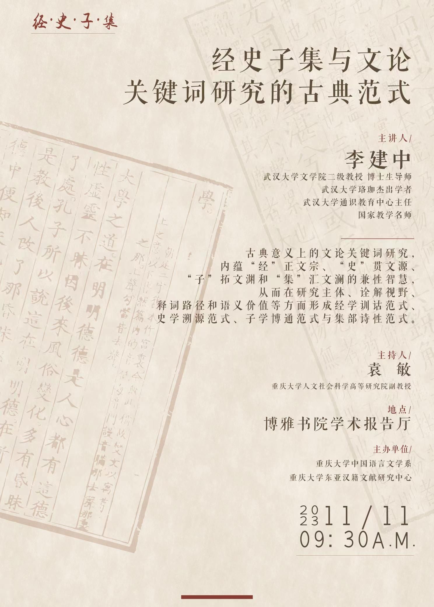 主讲人:李建中(武汉大学文学院二级教授,博士生导师)