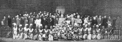 刘少奇等观看话剧《赤道战鼓》后与演员合影