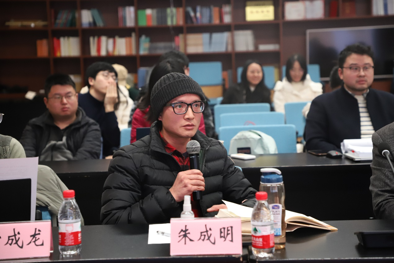 哲学系张文涛教授主持,谢利民副教授、朱成明副教授、董成龙副教授与谈,学院数十名师生参与研讨交流。