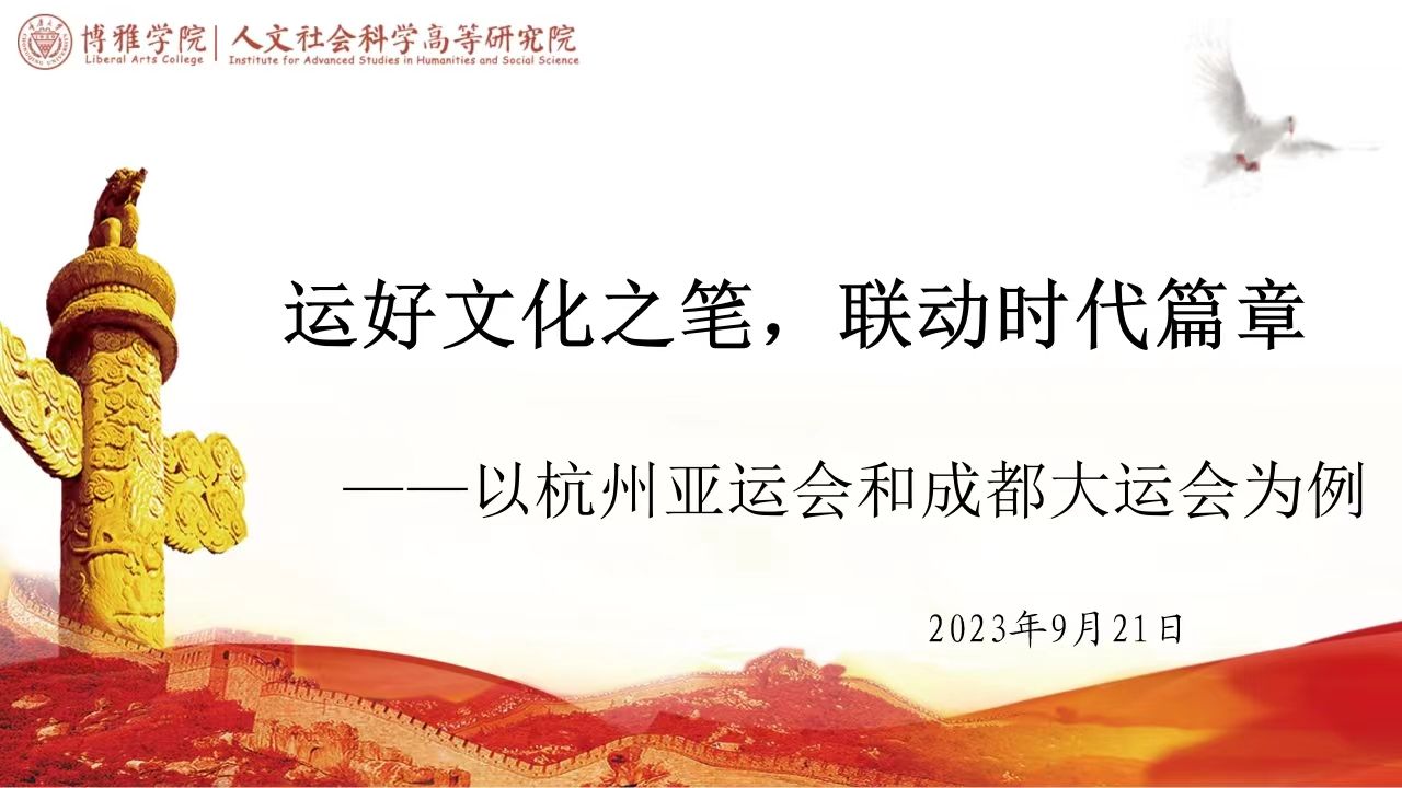 为牢牢把握新时代、新征程党的中心任务,培育具有时代洞察力和时代担当的青年,促进理论学习与社会实践深入结合,博雅学院本科生支部于2023年9月21日在博雅小院报告厅开展了“运好文化之笔,联动时代篇章——以杭州亚运会和成都大运会为例”主题党日活动。本次活动由边雨柯同志主持,支部党员、预备党员、发展对象参加。