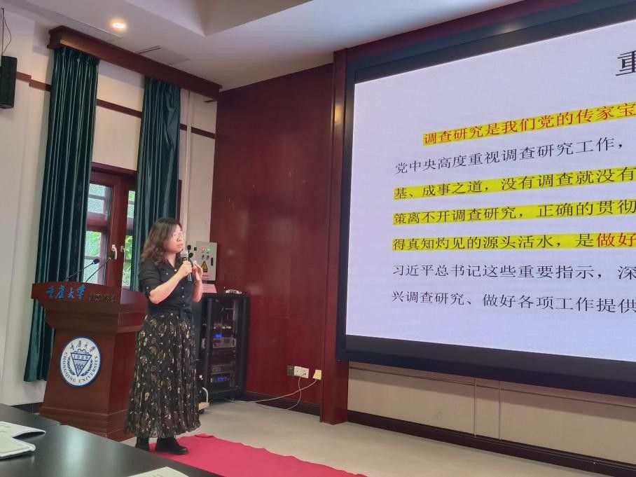 王瑞静首先带领大家一起学习了《关于在全党大兴调查研究的工作方案》,对文件的重要意义、总体要求、调研内容、方法步骤、工作要求五个方面进行了解读,指出调查研究是我们党的传家宝,是做好各项工作的基本功。