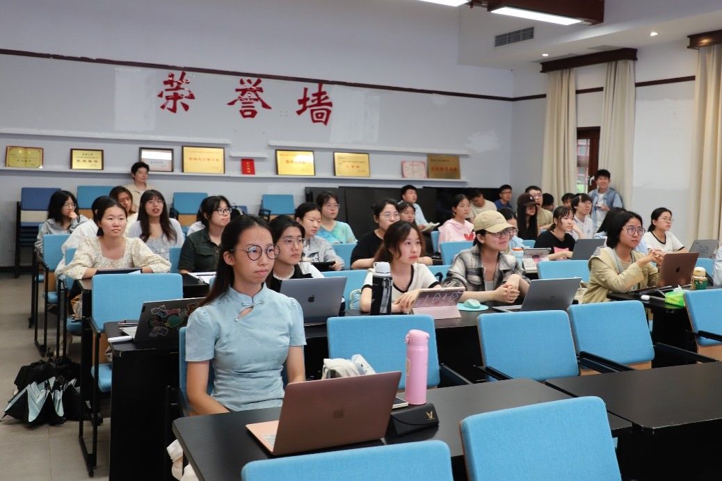 第三部分是保研经验分享。2020级法学专业的郑雅韵、汉语言文学专业的柳莹、哲学专业的王梓亦和史学专业的刘舒歆分别进行了经验分享。他们分享了自己“踩过的坑”和“走过的路”,认真向同学们介绍了夏令营和面试的流程概况,从材料投递、专业课复习、英语学习、论文准备等方面提供了实用建议,并提醒同学们在准备保研的过程中要合理安排时间,注意心态调整。