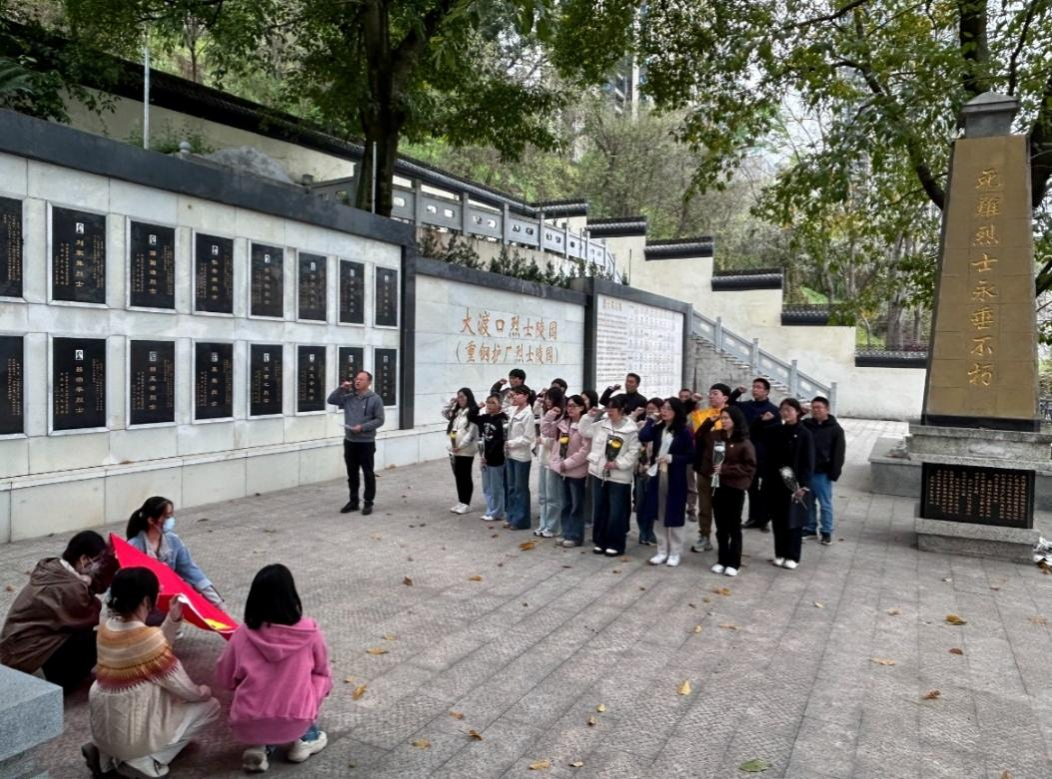 怀着崇敬与缅怀之情,全体党员来到了大渡口烈士陵园。这里安息着为重庆工业发展、民族解放事业英勇献身的烈士,他们的事迹早已镌刻在历史的丰碑之上。祭扫现场庄严肃穆,全体党员在党旗下庄严宣誓,重温入党时的铮铮誓言。