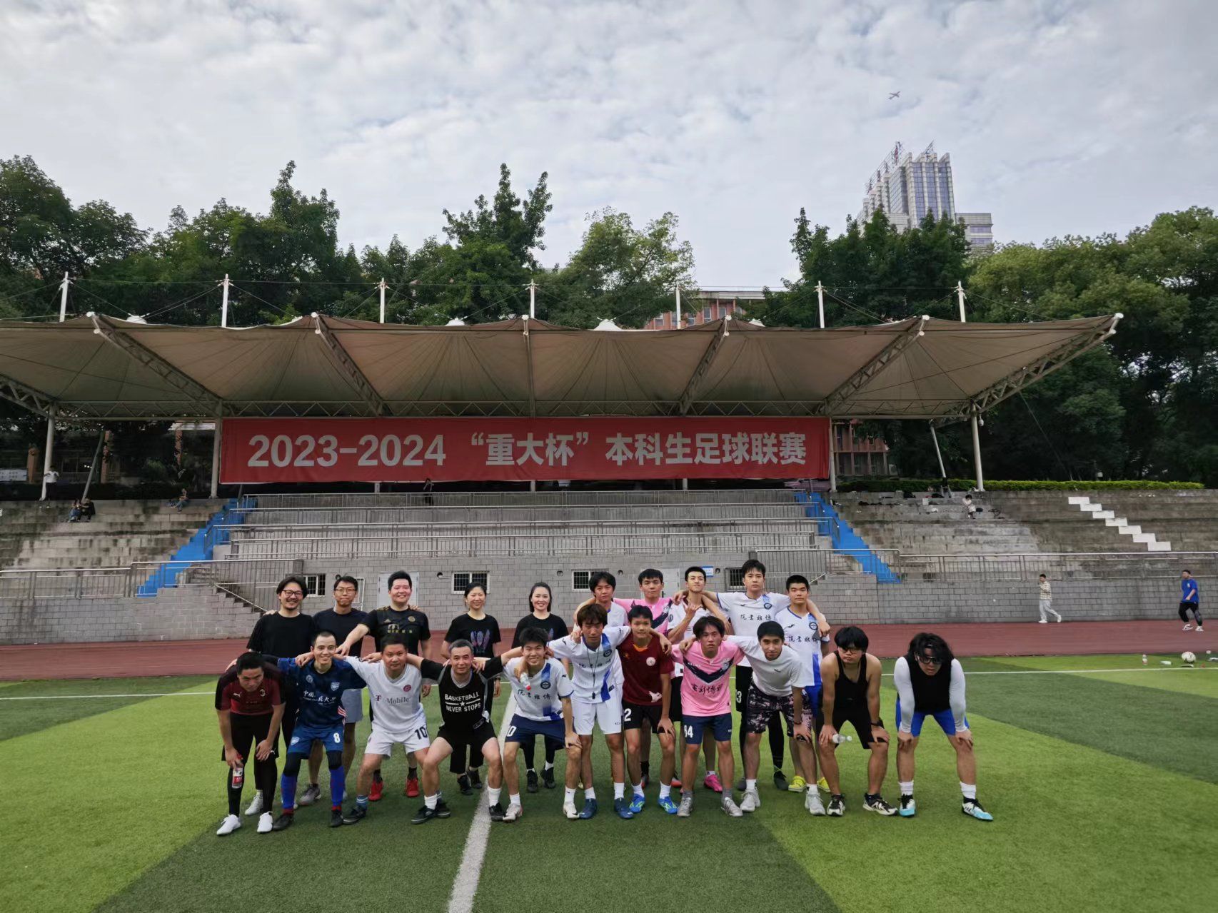 的老师、同学到场观看,比赛的氛围激烈而友好。赛后双方运动员和观众集体合影,相约来年再战。