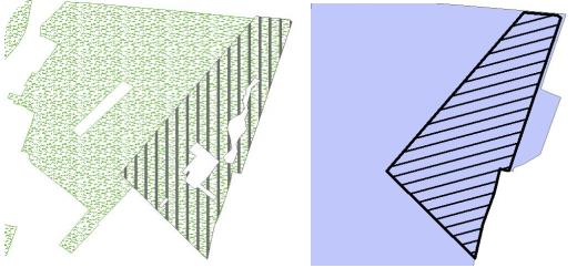 图3 黑色斜线区域为问题图斑B,左侧为占用永久基本农田,右侧为占用禁止建设区
