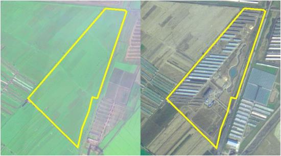 审计人员将问题图斑B叠加历年卫星遥感影像发现,该问题图斑疑似大型游乐设施,大约从201X年开始建设,202X年完成建设。201X年至20XX年遥感影像情况详见图4和图5。