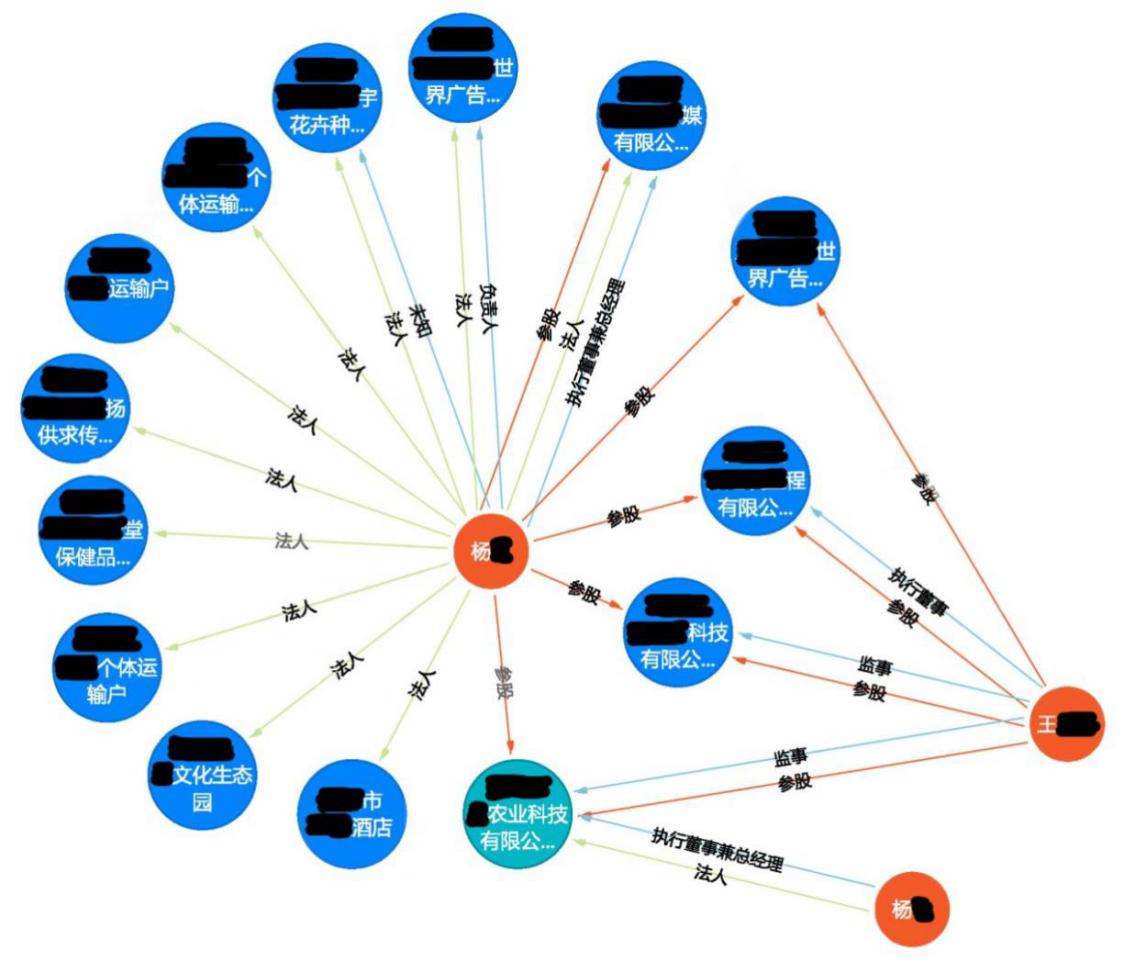 审计组利用Python语言将政务服务数据和Web服务返回的数据结果(JSON格式)导入到SQL Server中进行查询,通过工商信息数据库查询发现,4家JTL公司的注册地址均集中在“F省A市GC街道GCJC村XXX号”,并生成了可视化的关系图谱(详见图7)。