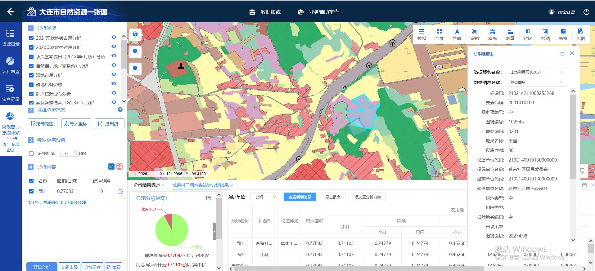 二是全面研究“政策+数据”审计手段。基于审计调查项目全面采集数据,围绕资金监管重点和政策难点堵点,精准锁定数据分析要点,运用先进的数据技术方法分析筛选疑点。结合政策清单制定详细的“大数据审计操作指引”,在审计专网环境下,利用大数据平台殡葬、低保、残疾人等辅助数据支撑,逐项对补贴对象身份条件关联比对;研究运用地理信息技术,将国土利用现状与土地确权矢量数据图斑叠加(图2),锁定果园、林地、撂荒地等问题地块,关联农业补贴发放数据发现虚报补贴面积疑点。快速准确核实这些精准到人、到户、到地的疑点,能有效实现问题从单点向多点、局部向整体的覆盖,精准揭示补助资金普遍被虚报冒领、违规发放问题。