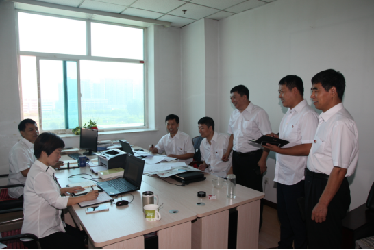(图一 孙黎同志(左三)与大家讨论审计案例)