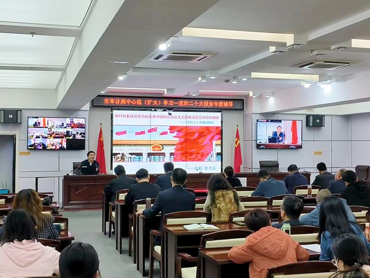 铁岭市审计局:邀请市委党校副校长曹立清做党的二十大精神专题辅导,并组织县(市、区)审计机关同步收看。会上,曹立清从新变革、新境界、新任务、新部署和新要求五个方面全面解读了党的二十大报告。 此次专题辅导主题鲜明、重点突出,具有很强的理论性和指导性。该局审计干部将继续深入、系统学习党的二十大精神,更加紧密地团结在以习近平同志为核心的党中央周围,埋头苦干、锐意进取,切实把学习成果转化为推动审计实践的思路和举措,把党的二十大精神贯彻落实到审计工作全过程,为推动幸福美好新铁岭建设贡献审计力量。